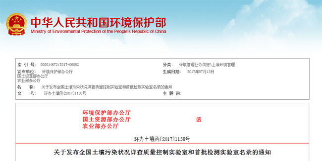 2016年底,環(huán)保部聯(lián)合國(guó)土資源部、農(nóng)業(yè)部等部門正式啟動(dòng)了“組織做好全國(guó)土壤污染狀況詳查實(shí)驗(yàn)室篩選工作”。依據(jù)相關(guān)通知,檢測(cè)實(shí)驗(yàn)室主要負(fù)責(zé)詳查樣品(包括土壤、農(nóng)產(chǎn)品和地下水)的制備和分析測(cè)試工作,主要由各地省市兩級(jí)環(huán)境保護(hù)、國(guó)土資源、農(nóng)業(yè)部門中技術(shù)能力強(qiáng)、專業(yè)水平高、儀器設(shè)備齊全、管理嚴(yán)格規(guī)范的分析測(cè)試實(shí)驗(yàn)室,以及持有《檢驗(yàn)檢測(cè)機(jī)構(gòu)資質(zhì)認(rèn)定證書(shū)》或中國(guó)合格評(píng)定國(guó)家認(rèn)可委員會(huì)頒發(fā)的《實(shí)驗(yàn)室認(rèn)可證書(shū)》、總體技術(shù)和管理水平高的第三方專業(yè)檢測(cè)實(shí)驗(yàn)室組成。