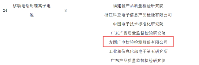本次招標涉及家用電器、休閑服裝等37類產品的監督抽查,方廣檢測成功入圍“移動電話用鋰離子電池”、“皮膚及毛發護理器具”、“廚房機械”三類產品的國抽承檢機構供應商。后期,質檢總局將按“雙隨機”程序,在入圍供應商中抽取部分機構承接相應產品的國抽任務。