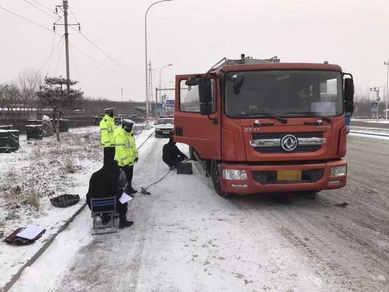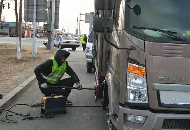 “掛空擋,拉手剎!”隨后,一名交警登上駕駛艙,用力踩下油門,隨即傳來發動機的轟鳴聲。與此同時,還有一人正蹲著身子,將長長的管線插入大貨車的排氣管。