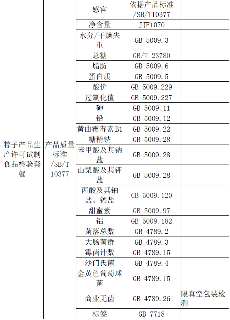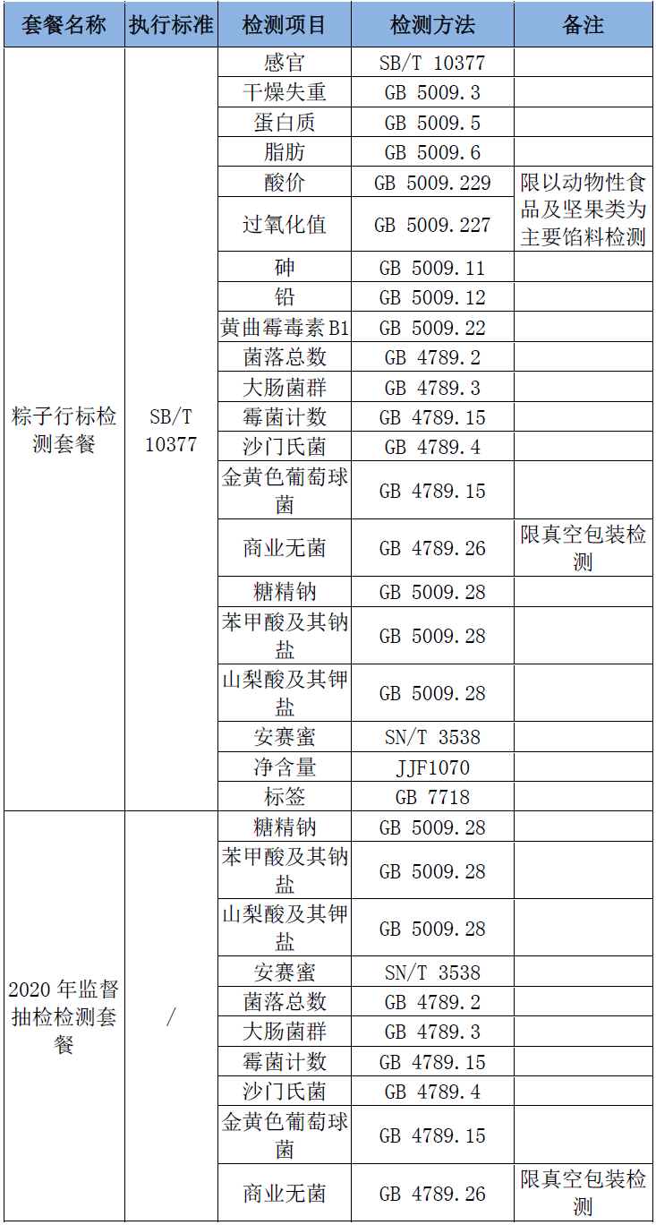 粽子主要原料檢測;粽子型式檢驗、國家監督抽檢高風險檢測套餐、粽子產品生產許可前試制產品檢測: