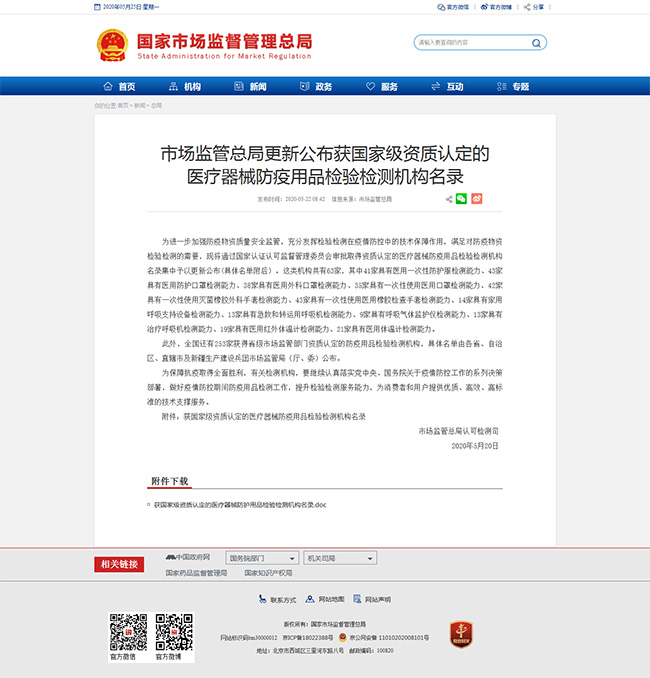 官宣!方廣檢測進入總局國家級醫療器械防疫用品檢驗檢測機構名錄