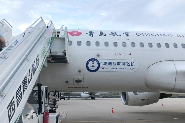 2020年7月7日19時21分,隨著青島航空QW9771航班安全降落成都雙流國際機場,中國首架高速互聯網飛機首航成功,開啟中國民航新基建數字化里程!