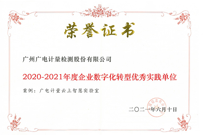 廣電計量作為國有上市第三方計量檢測機構受邀出席,憑借 “云上智慧實驗室”的創新實踐案例,獲評“2020-2021年度企業數字化轉型優秀實踐單位”榮譽稱號。