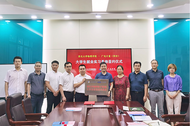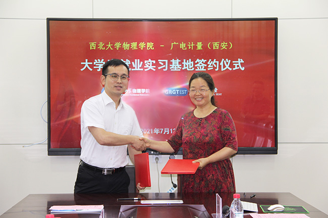 7月13日,廣電計(jì)量檢測(cè)(西安)有限公司(簡稱西安廣電計(jì)量)與西北大學(xué)物理學(xué)院舉行“大學(xué)生就業(yè)實(shí)習(xí)基地”簽約授牌儀式。雙方圍繞產(chǎn)學(xué)研合作與人才培養(yǎng)等方面進(jìn)行了深入洽談,并簽署校企合作協(xié)議。西北大學(xué)物理學(xué)院黨委書記、常務(wù)副院長張軍麗,副院長鄭新亮、師耀武,黨委副書記楊軍良;西安廣電計(jì)量總經(jīng)理李軍等出席了簽約授牌儀式。