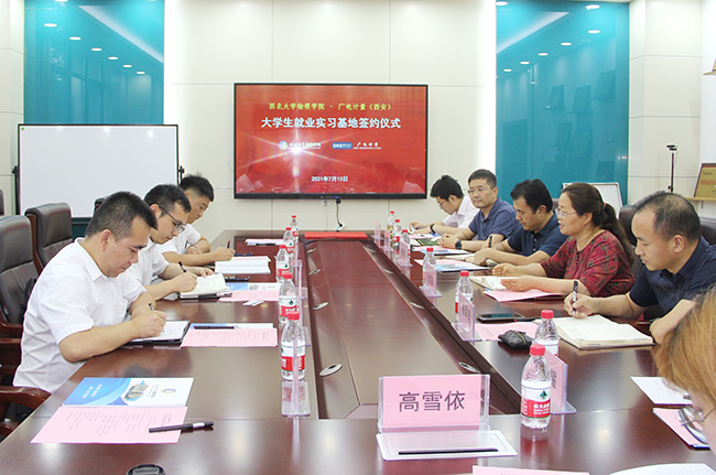 西北大學(xué)物理學(xué)院黨委書記、常務(wù)副院長張軍麗發(fā)表了簡短致辭,介紹了西北大學(xué)物理學(xué)院的發(fā)展歷程、學(xué)科建設(shè)特色專業(yè)等情況,希望能和廣電計(jì)量開展全方位的合作,謀取雙方互利互贏。教學(xué)副院長鄭新亮從學(xué)科資源、專業(yè)設(shè)置、人才特色和實(shí)習(xí)實(shí)踐等方面進(jìn)行了詳細(xì)介紹,提出了圍繞實(shí)踐教學(xué)、科研合作、技術(shù)創(chuàng)新、課程開發(fā)、職業(yè)規(guī)劃和人才輸出等六個(gè)方面的合作意向。