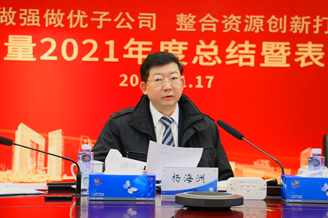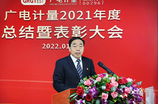 楊海洲發表《對標世界一流管理 爭做行業先鋒企業》主題講話。他從構建綜合化業務格局、啟動總部基地建設、技術研發成果卓著、穩妥推進資本運作、黨建與業務深度融合五個方面,點評廣電計量2021年度的亮點工作,對2021年廣電計量經營管理團隊帶領每位員工努力奮斗取得的發展成果表示肯定。