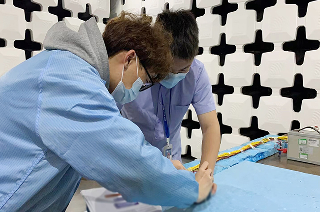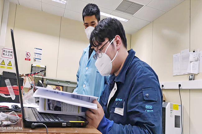在一分一秒流逝的時間面前,居住在非封控管理小區(qū)的上海子公司黨支部黨員、電磁兼容檢測實驗室主任瞿軍早上接到消息后顧不上仔細收拾,立即主動趕至公司協(xié)調(diào)測試排期;同時通過電話、微信群聯(lián)系可值班員工趕回公司,迅速集結起一支攻堅小組。這意味著他們在一段時間內(nèi)將始終留在公司不能回家,等于主動放棄了與家人團聚的機會。