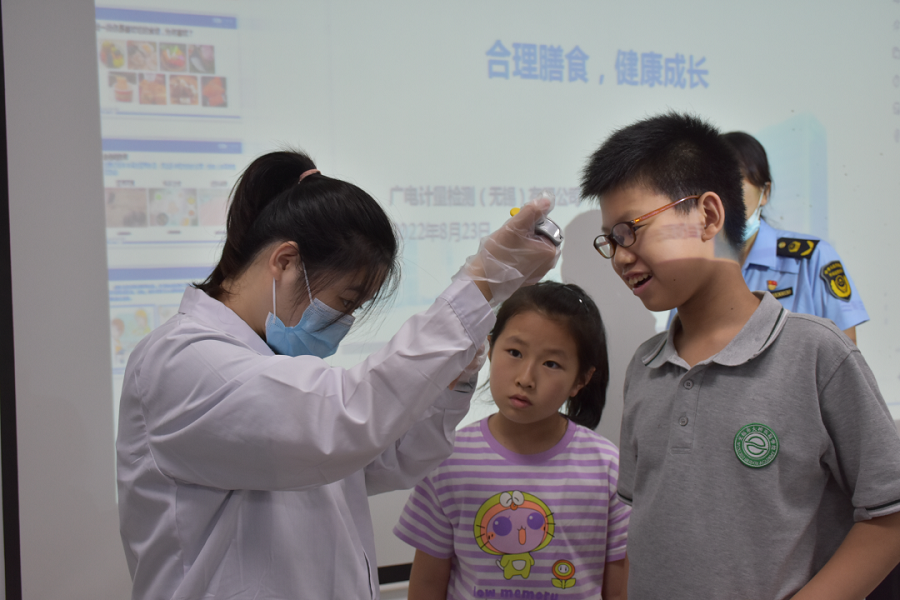 此外,作為無(wú)錫市濱湖區(qū)的“食品安全宣傳周”系列活動(dòng)之一,濱湖區(qū)市場(chǎng)監(jiān)管局“2022年青少年食品安全公益夏令營(yíng)”也走進(jìn)廣州廣電計(jì)量檢測(cè)無(wú)錫有限公司食品檢測(cè)實(shí)驗(yàn)室,“零距離”體驗(yàn)食品安全檢測(cè)。
