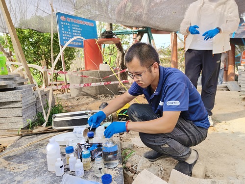 不同于常見的地表水監測任務,地下水監測對在線監測設備的取放方法、洗井設備(泵)的選擇及采樣時間等都有特殊要求。為確保項目完成質量,保障團隊實行“公司、計量檢測基地、項目組”三級質量保障措施和綜合保障體系,確保各項工作既能嚴格落實質量控制,保證所得檢測數據準確可靠,又能高效協同不誤進度。最終,項目采樣工作較合同要求時間提早10天完成,為項目后續檢測及成果匯總工作提供了時間保障。