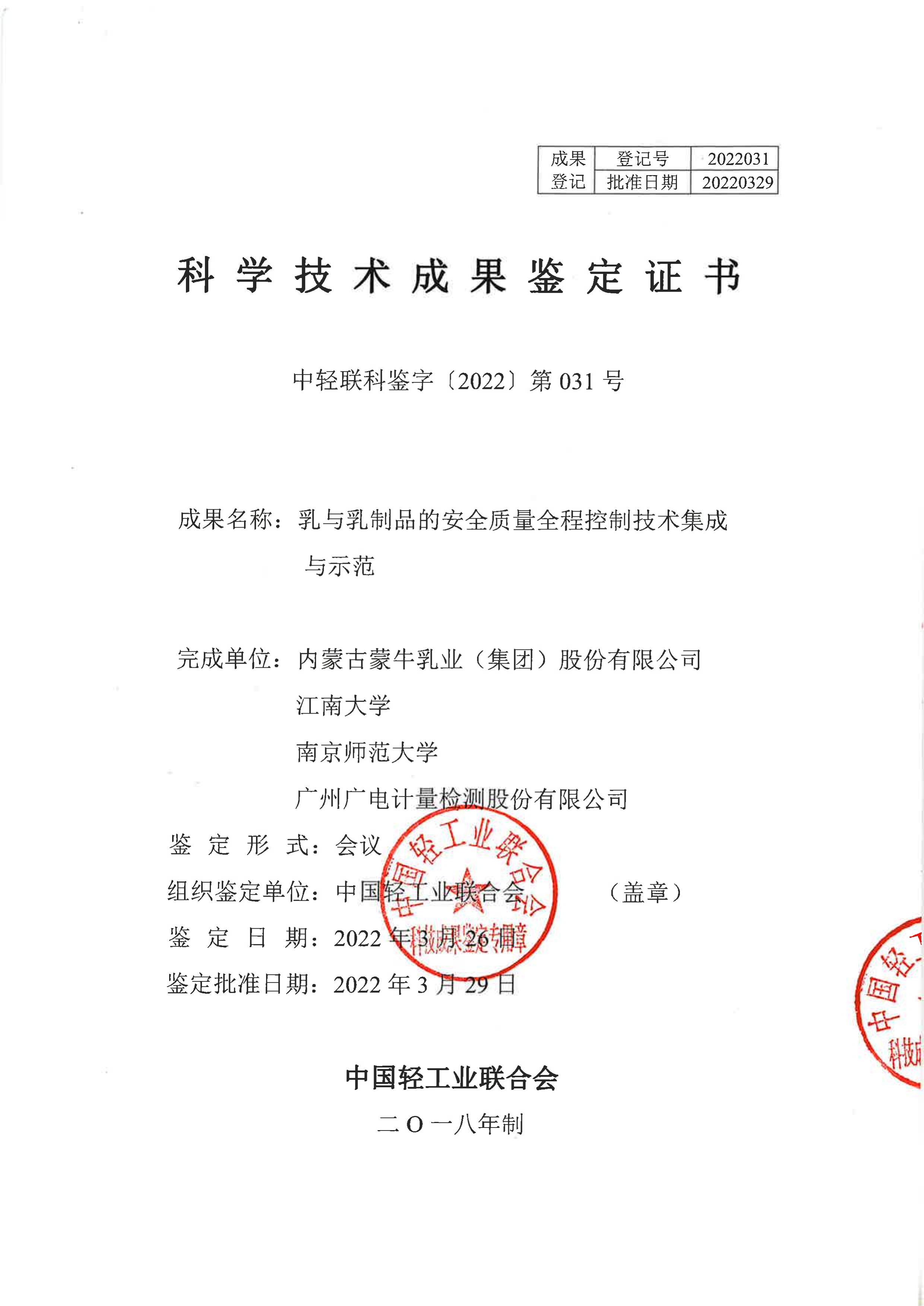近日,中國(guó)輕工業(yè)聯(lián)合會(huì)組織有關(guān)專(zhuān)家召開(kāi)了“十三五”重點(diǎn)研發(fā)計(jì)劃項(xiàng)目技術(shù)成果鑒定會(huì)。廣電計(jì)量參與的《乳與乳制品加工靶向物質(zhì)危害控制技術(shù)集成應(yīng)用示范》項(xiàng)目(以下簡(jiǎn)稱(chēng)“項(xiàng)目”)順利通過(guò)成果鑒定。專(zhuān)家組通過(guò)聽(tīng)取研究團(tuán)隊(duì)匯報(bào)、審閱相關(guān)資料、質(zhì)詢(xún)討論等環(huán)節(jié),一致認(rèn)為項(xiàng)目整體技術(shù)達(dá)到了國(guó)際先進(jìn)水平,具備廣闊的推廣與應(yīng)用前景。