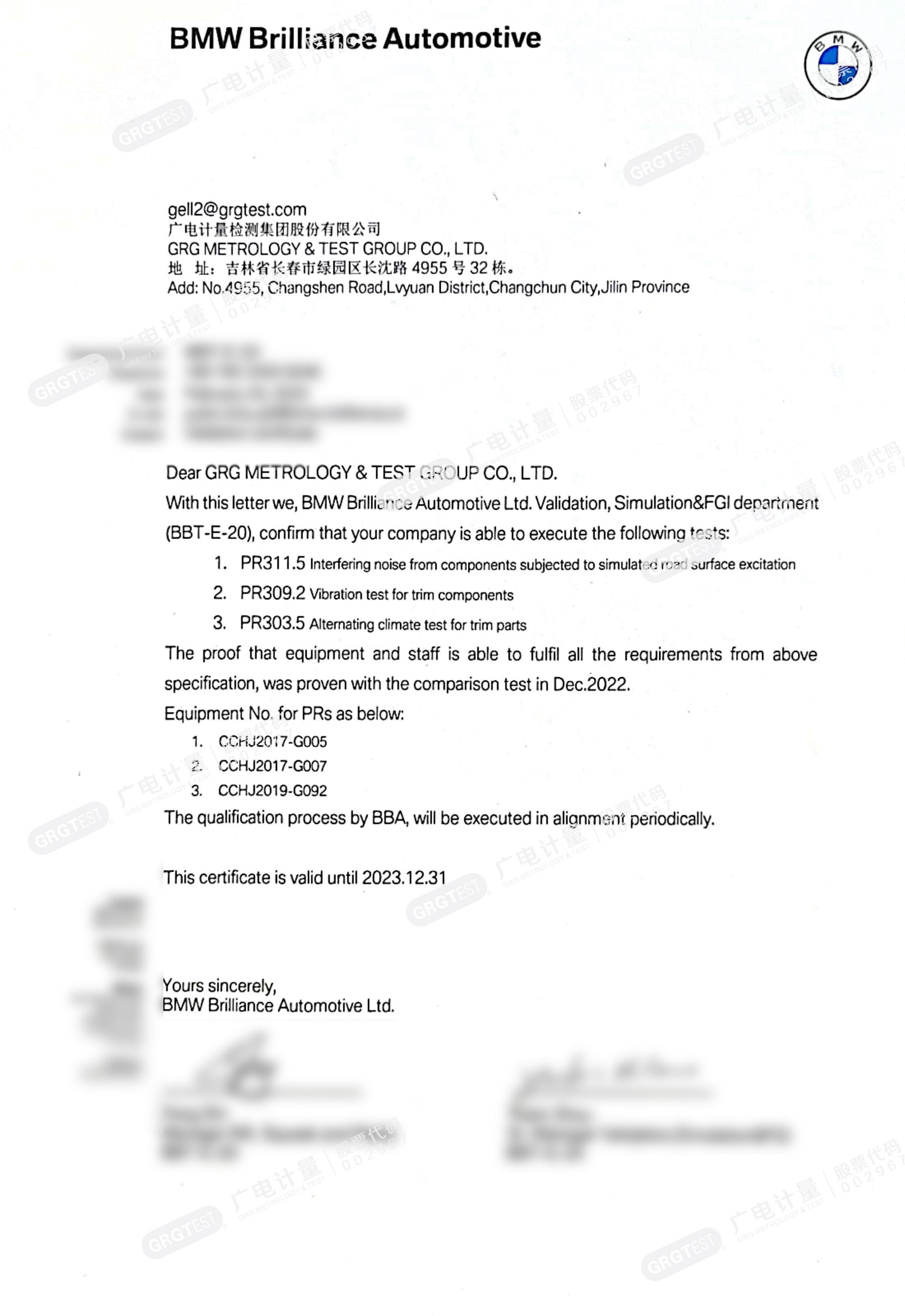 守護駕駛樂趣 | 廣電計量喜獲華晨寶馬異響及環境可靠性測試能力資質認可