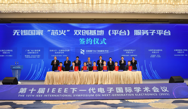 簽約儀式上,吳漢明、崔榮國、倪松濤、馮愛東、顧國棟、朱曉紅、劉成、劉俊杰共同見證無錫國家“芯火”雙創基地(平臺)與無錫廣電計量、華潤安盛、迪思微、東南大學無錫集成電路技術研究所、芯啟博、納瑞電子6家服務子平臺合作簽約。本次簽約的子平臺可優先為本地集成電路企業提供包括失效分析及可靠性、測試服務、晶圓制造服務、封裝服務等在設計、制造、封測等關鍵節點的公共技術專業服務,將進一步整合無錫集成電路產業公共服務資源與服務能力,實現資源優勢互補、降本增效、協同發展。