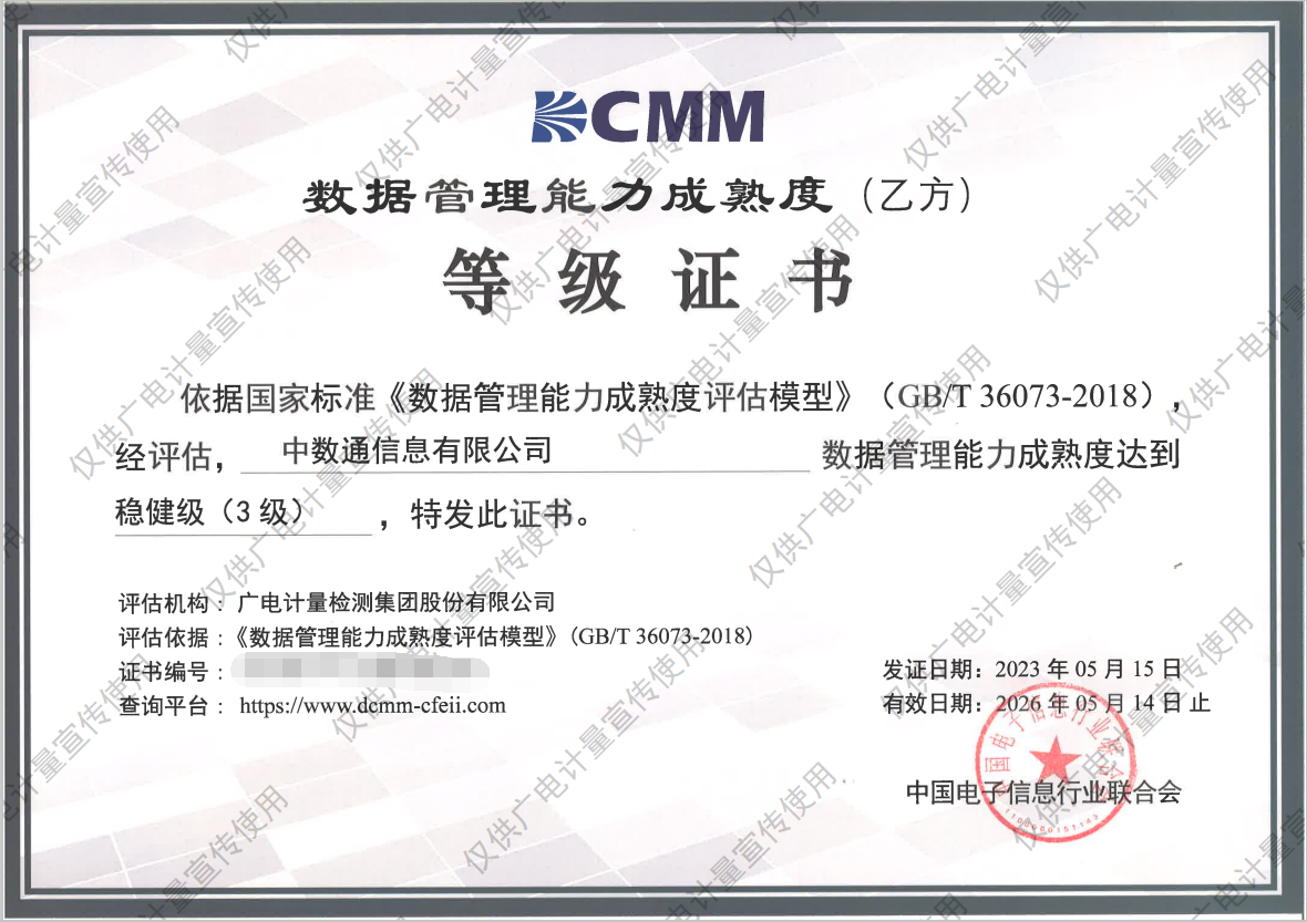 隨著數(shù)字經(jīng)濟的快速發(fā)展以及傳統(tǒng)業(yè)務的數(shù)字化轉(zhuǎn)型推進,數(shù)據(jù)治理已經(jīng)成為數(shù)字經(jīng)濟時代下,企業(yè)競爭過程中保持競爭優(yōu)勢的重要抓手。為貫徹落實國家大數(shù)據(jù)產(chǎn)業(yè)相關(guān)部署、中央數(shù)據(jù)二十條的重要精神,廣電計量在中國電子信息行業(yè)聯(lián)合會的引領(lǐng)下開展DCMM貫標活動,進一步夯實我國數(shù)據(jù)治理基礎(chǔ)、鞏固國家數(shù)據(jù)安全、激發(fā)數(shù)據(jù)要素市場活力、助力我國產(chǎn)業(yè)數(shù)字化轉(zhuǎn)型和數(shù)字產(chǎn)業(yè)化發(fā)展。