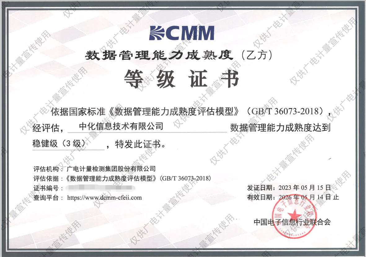 2023年4月,中國電子信息行業(yè)聯(lián)合會召開本年度“首次DCMM標準貫標評估報告專家評審會”,廣電計量評估的中化信息技術(shù)有限公司、廣東省電信規(guī)劃設(shè)計院有限公司、長沙市規(guī)劃信息服務中心、山東鋒士信息技術(shù)有限公司、中數(shù)通信息有限公司等優(yōu)秀企業(yè)順利通過DCMM 3級(穩(wěn)健級)的評審,至此,廣電計量累計服務的3級以上貫標企業(yè)已達20余家。