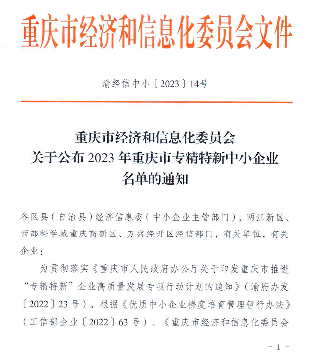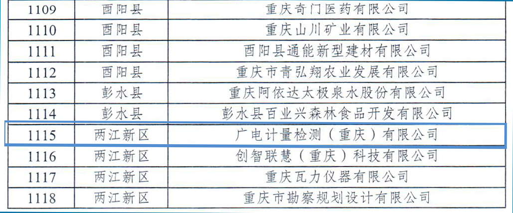 日前,重慶經濟和信息化委員會公布了2023年重慶市“專精特新”中小企業名單,廣電計量檢測(重慶)有限公司成功入選。今年上半年,廣電計量已有重慶廣電計量、天津廣電計量、湖南廣電計量、無錫廣電計量、山鋒測控等5家企業新獲“專精特新”認定,其中省級“專精特新”中小企業3家,市級“專精特新”中小企業2家。