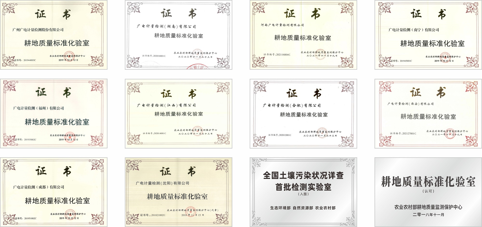 廣電計量已在廣州、長沙、鄭州、南寧、沈陽、成都、南昌、西安、合肥、福州、天津等11個地區(qū)建立生態(tài)環(huán)境檢測實驗室,先后榮獲“南方耕地污染防控企業(yè)重點實驗室”“全國土壤污染狀況詳查檢測實驗室”“耕地質(zhì)量標(biāo)準(zhǔn)化驗室”等項目承接資質(zhì)榮譽;截至2022年7月11日,廣電計量已有10家實驗室全部入圍《第三次全國土壤普查檢測實驗室公示名單》;長沙、合肥實驗室成功?圍本省第三次全國土壤普查外業(yè)調(diào)查與采樣單位名單。