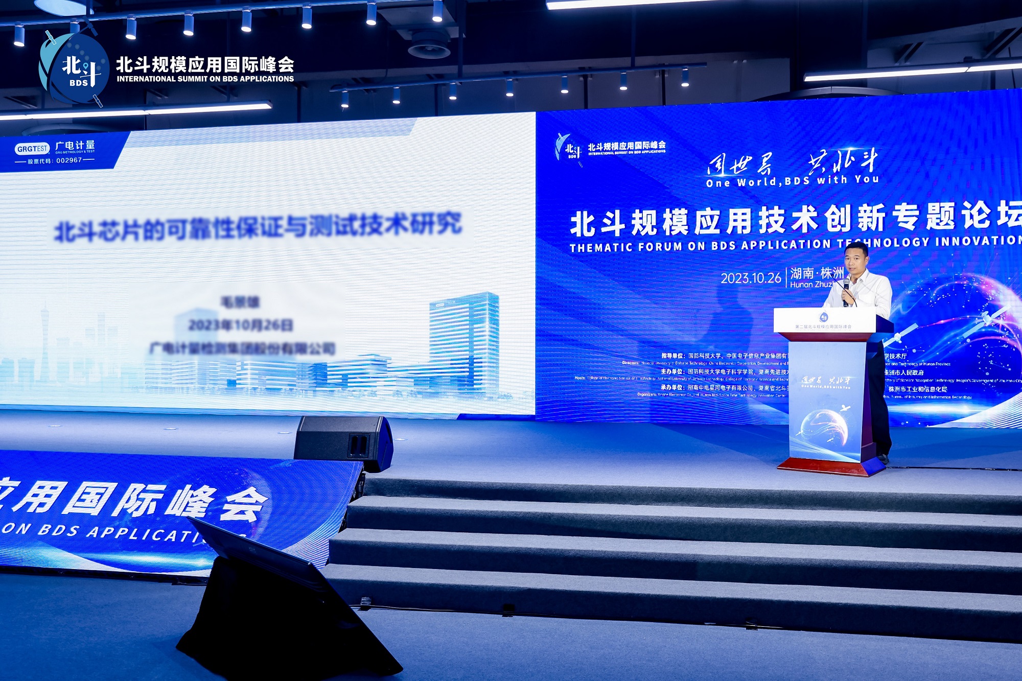 10月26日,第二屆北斗規(guī)模應用國際峰會在湖南省株洲市舉行。工業(yè)和信息化部黨組書記、部長金壯龍出席大會并致辭。湖南省委書記沈曉明,省委副書記、省長毛偉明出席大會。廣電計量受邀參會,集成電路測試與分析中心副總監(jiān)毛景雄出席專題論壇并作《北斗芯片的可靠性保證與測試技術研究》主題報告。