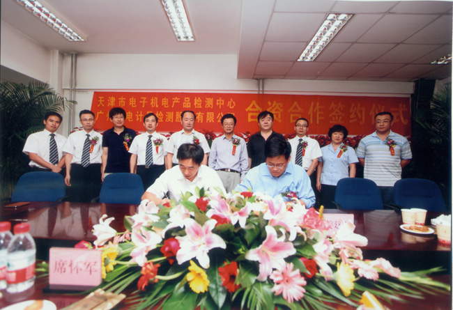 9月3日,GRGT與天津市電子機電產品檢測中心簽署合資合作協議,擬在天津市共同打造國際領先、國內一流的一站式計量檢測公共技術服務平臺。天津市無線電管理委員會辦公室席懷軍主任、廣州無線電集團常務副總裁、廣電計量王俊董事長出席簽約儀式并致辭。