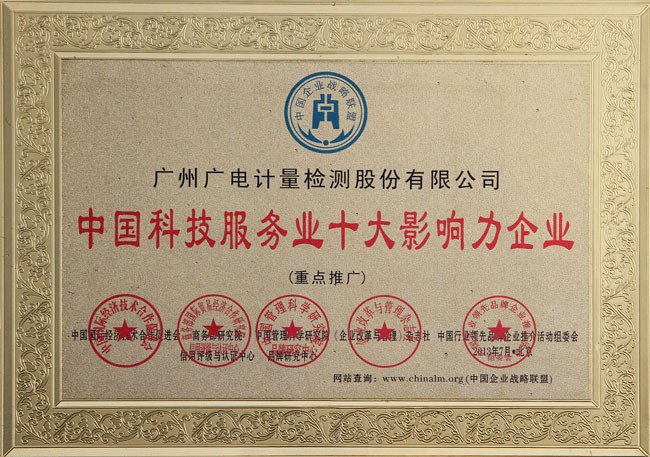 GRGT被評為“中國科技服務業十大影響力企業” 及 “中國計量檢測服務領軍品牌”