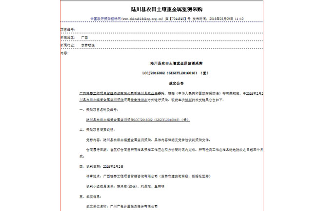 5月9日、5月13日,廣電計量陸續(xù)中標廣西省陸川縣農(nóng)田土壤重金屬監(jiān)測采購、廣西省靖西縣水稻樣品重金屬檢測第三方服務及水稻樣品采集第三方服務采購兩個環(huán)保項目。本次接連中標政府環(huán)保檢測項目是廣電計量籌建南寧檢測基地,正式進軍廣西市場的良好開局,后續(xù)廣電計量將進一步完善南寧市實驗室檢測能力,為廣西政府、企業(yè)提供更優(yōu)質(zhì)、可靠的本地化服務。