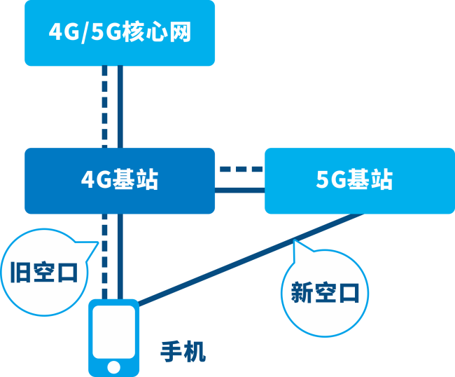 藍(lán)工:NR是New Radio的縮寫(xiě),也被稱(chēng)為“新空口”。我們都知道,5G是非常靈活的,具體怎么靈活呢?它可以獨(dú)立組網(wǎng),也可以跟4G一起非獨(dú)立組網(wǎng)。以手機(jī)為例,同一部手機(jī)因此擁有兩路空口連接,跟4G基站之間的鏈路就是“舊空口”,跟5G基站之間的鏈路就是 “新空口”了。