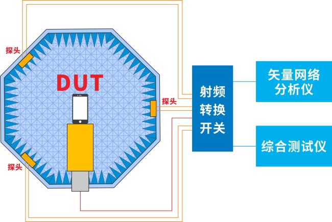 對(duì)于RF傳導(dǎo)測(cè)試來(lái)說(shuō),隨著被測(cè)設(shè)備 (DUT) 的集成度大幅提升,我們無(wú)法使用電纜在被測(cè)設(shè)備和測(cè)試設(shè)備之間建立物理連接。更重要的是,它無(wú)法將天線(xiàn)因素對(duì)整機(jī)性能的影響考慮在內(nèi),難以完整驗(yàn)證出整機(jī)內(nèi)部不同功能單元的干擾情況,也無(wú)法評(píng)估人體對(duì)產(chǎn)品無(wú)線(xiàn)性能影響。