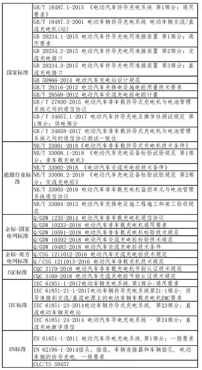 能源局標準主要規(guī)定了交/直流充電樁的充電功能、通訊功能、安全防護、電磁兼容等檢測方法與檢測要求,是目前市面上投入運營的充電樁必須過檢的權威標準;