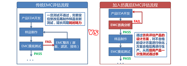 1) 對于傳統的產品開發流程,大多是在樣品設計及生產后,再依據相關測試標準對產品進行摸底測試和評估。一旦出現EMC不符合時,往往需要通過整改后再次制作樣品并重新測試。