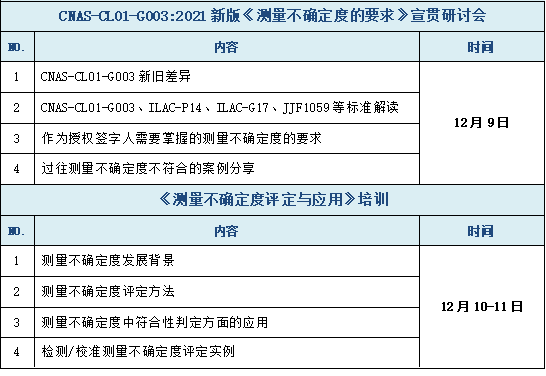 3、僅參加12月9日研討會的人員,頒發(fā)《CNAS-CL01-G003:2021測量不確定度》培訓(xùn)證書。