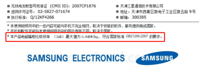 國際科學(xué)界用比吸收率(SAR)值來對(duì)手機(jī)輻射進(jìn)行量化和測(cè)量。目前,根據(jù)中國國家強(qiáng)制標(biāo)準(zhǔn)GB 21288-2007,任意10克生物組織、任意連續(xù)6分鐘內(nèi)的平均比吸收率(SAR)值不得超過2.0W/kg。如不少手機(jī)廠商都會(huì)向大眾展示其SAR的信息: