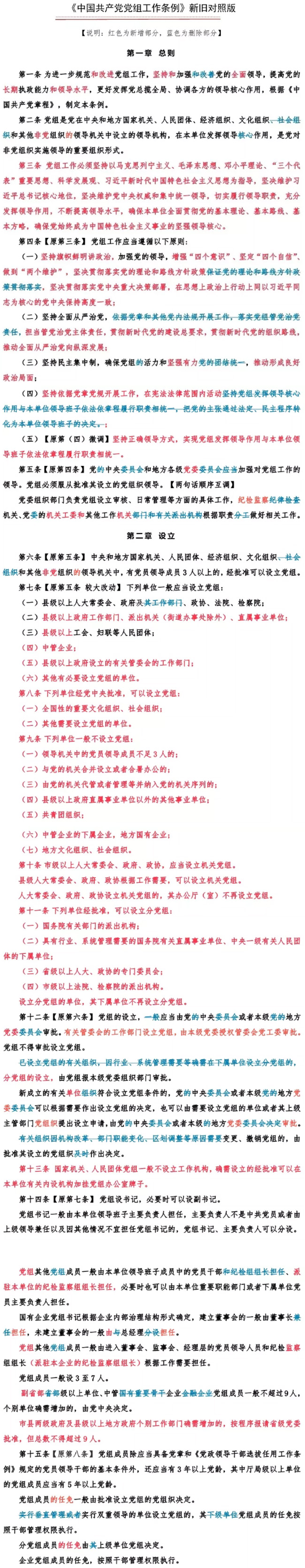 《中國共產(chǎn)黨黨組工作條例》新舊對照版