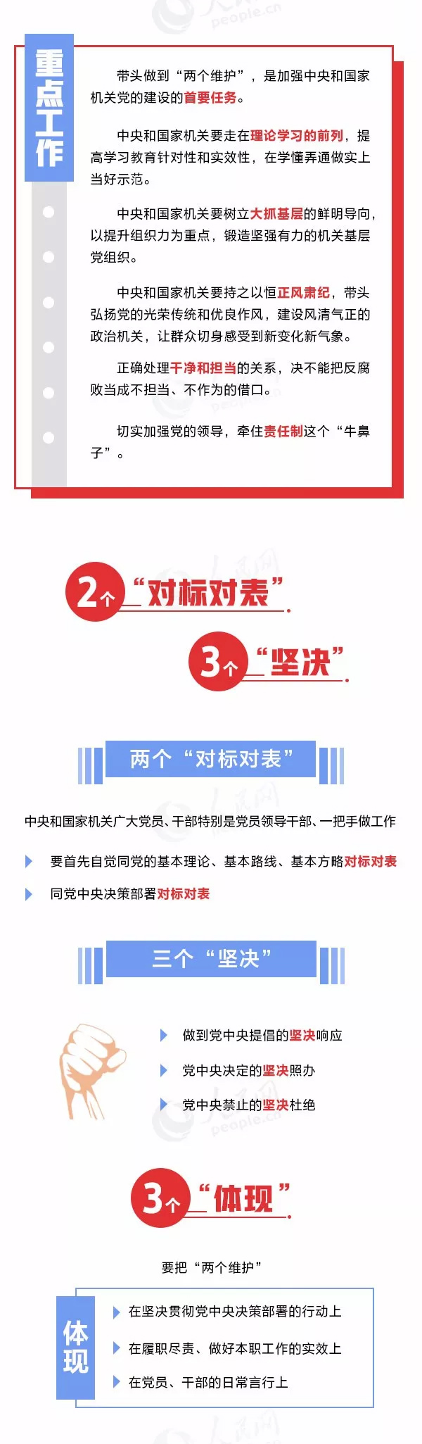 通知要求,各級黨組織要自覺對標習近平總書記重要指示精神,找差距、查問題、補短板,深化檢視剖析工作。中央和國家機關(guān)、省級機關(guān)和副省級城市機關(guān)要重點查找在做到“兩個維護”方面的差距,看是否做到黨中央提倡的堅決響應、黨中央決定的堅決照辦、黨中央禁止的堅決杜絕;查找在加強理論學習方面的差距,看是否在真學真懂真信真用習近平新時代中國特色社會主義思想上下功夫;查找在夯實基層基礎(chǔ)方面的差距,看是否存在機關(guān)黨建“燈下黑”的問題;查找在正風肅紀方面的差距,看是否堅決克服形式主義、官僚主義,是否堅持嚴字當頭,加強對黨員、干部全方位的管理監(jiān)督,一體推進不敢腐、不能腐、不想腐;查找在落實主體責任方面的差距,看是否牽住責任制這個“牛鼻子”,做到明責、履責、盡責。