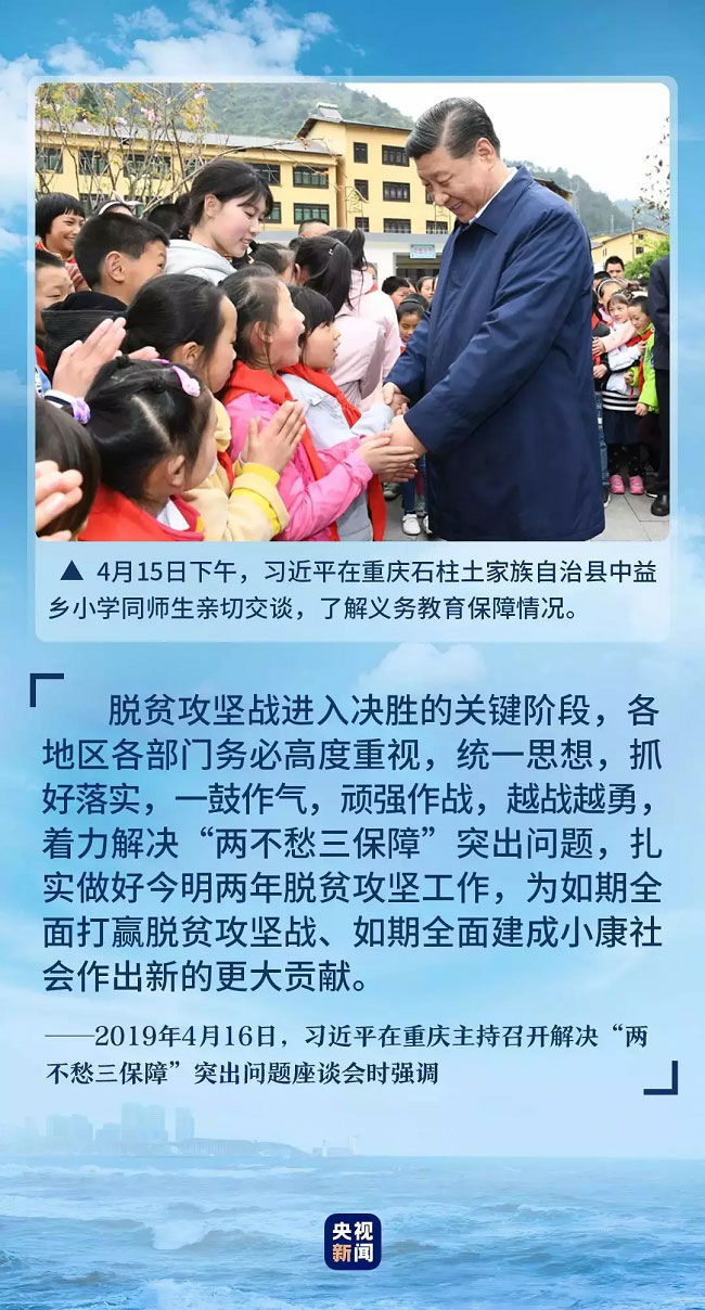 “全面小康路上一個也不能少。”這是習(xí)近平總書記常說的一句話。這一年,習(xí)近平在重慶、江西、內(nèi)蒙古、甘肅、河南等地方考察時,都來到脫貧攻堅第一線,了解脫貧情況。
