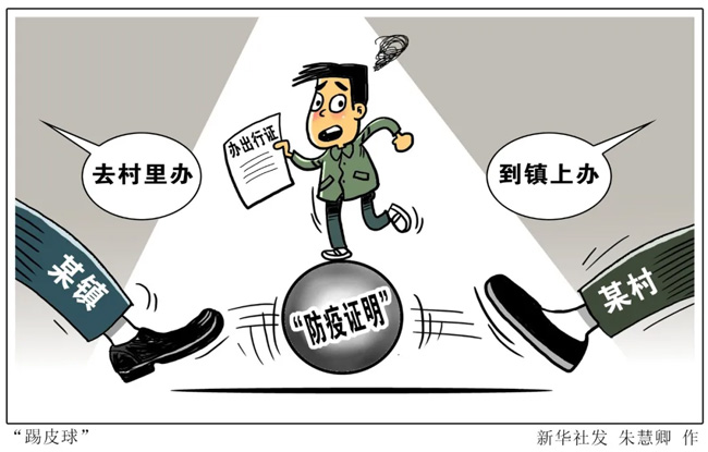 ——遭遇“踢皮球”。春節(jié)探親的王先生,因疫情被困在重慶奉節(jié)縣近一個月。最近單位要求復工,為辦回家的出行證,他跑了6趟村鎮(zhèn)多個部門,打了30多個電話,不是找不到人就是一問三不知,始終未辦成證明。“鎮(zhèn)上叫我去村里,村里又讓我去鎮(zhèn)上,推來推去。”