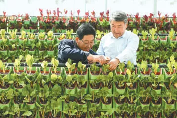 山東利津縣鹽窩鎮委黨校邀請“土專家”在田園綜合體智能溫室大棚內,向村民傳授蔬菜種植技術。