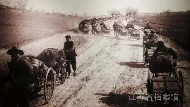 淮海戰役期間,浩浩蕩蕩的人民支前大軍。圖片來源:江蘇省檔案館
