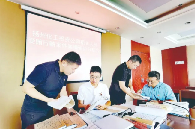 江蘇省高郵市紀委監委將工程建設招投標、生態環保、安全生產等領域作為查處重點,深入推進受賄行賄一起查。圖為近日,該市紀委監委第七審查調查室就揚州化工投資公司相關人員受賄行賄案件召開案情分析會。譚倩 攝