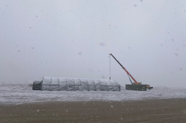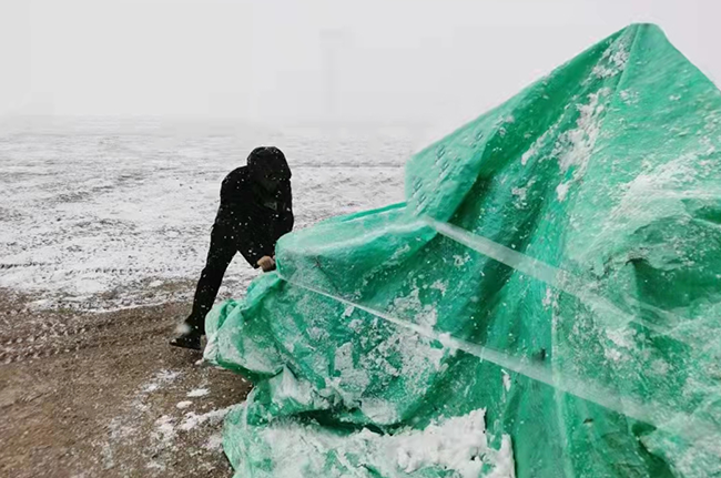 團(tuán)隊頂著風(fēng)雪作業(yè)
