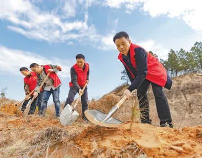 江西廬山市蓼南鄉的黨員干部正在種植濕地松。韓俊烜攝(人民視覺)