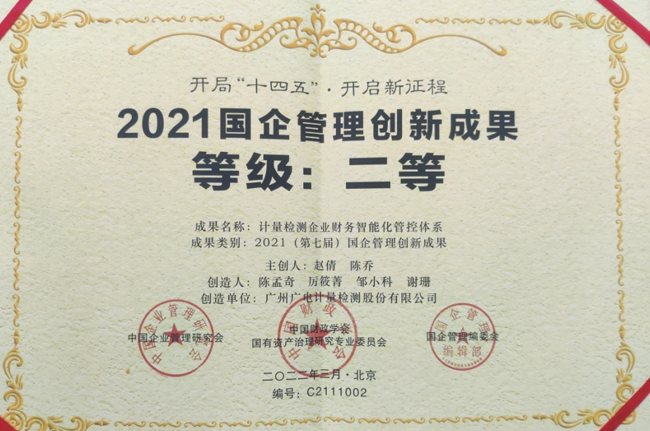 關(guān)關(guān)難過(guò)關(guān)關(guān)過(guò)。經(jīng)過(guò)初審與答辯、調(diào)研與復(fù)核、公示與終審等環(huán)節(jié),廣電計(jì)量報(bào)送的案例《計(jì)量檢測(cè)企業(yè)財(cái)務(wù)智能化管控體系》從來(lái)自全國(guó)范圍的中央企業(yè)、地方國(guó)企、研究機(jī)構(gòu)和大專(zhuān)院校參與申報(bào)的共4300多項(xiàng)成果(案例)中脫穎而出,成功獲得第七屆國(guó)企管理創(chuàng)新成果(案例)第二等級(jí)。