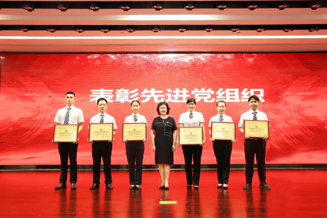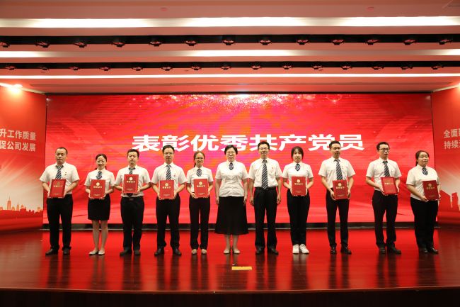 謝春霖(右五)與趙倩(右六)為公司“優(yōu)秀共產(chǎn)黨員”獲獎(jiǎng)代表頒獎(jiǎng)