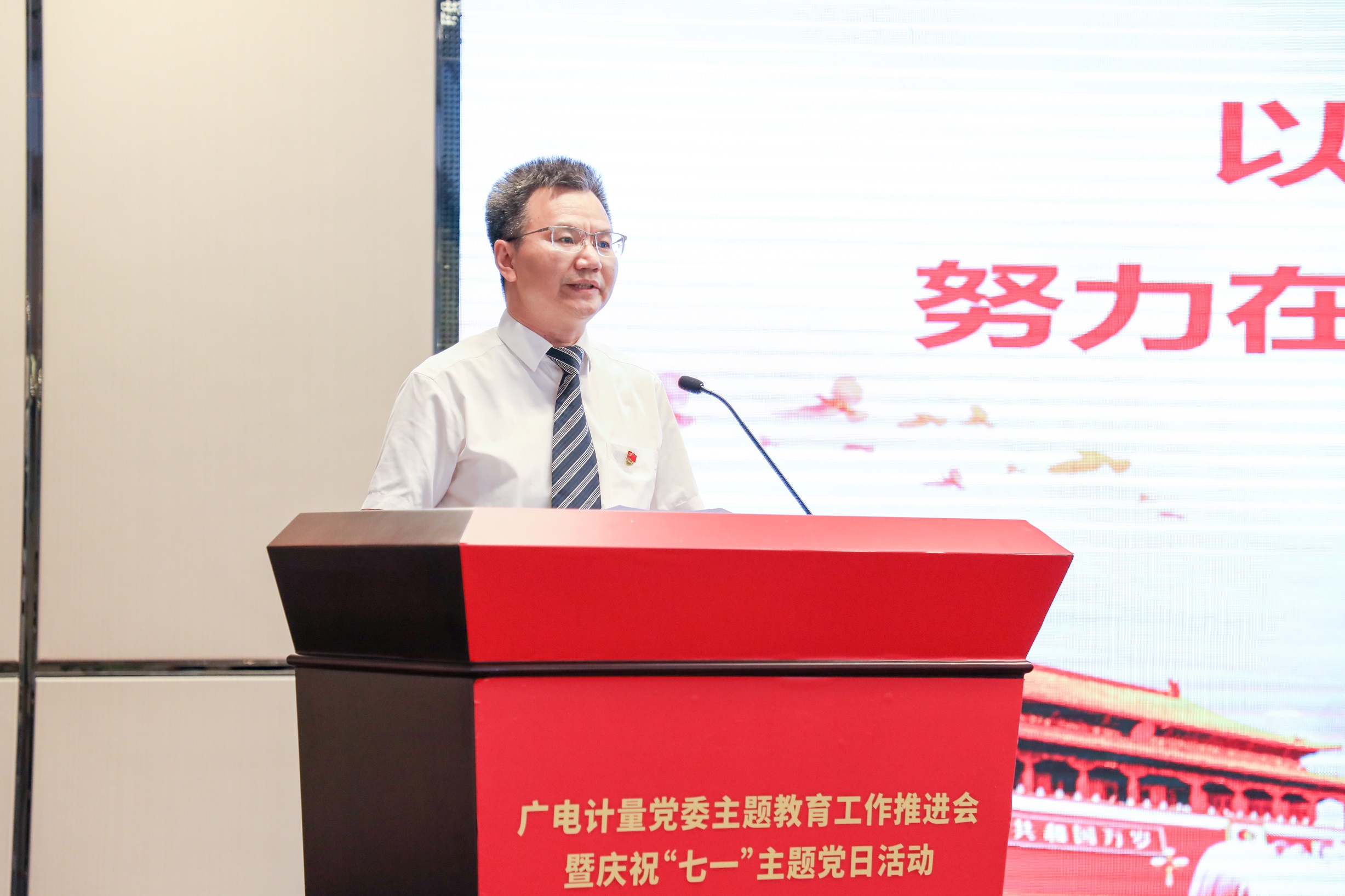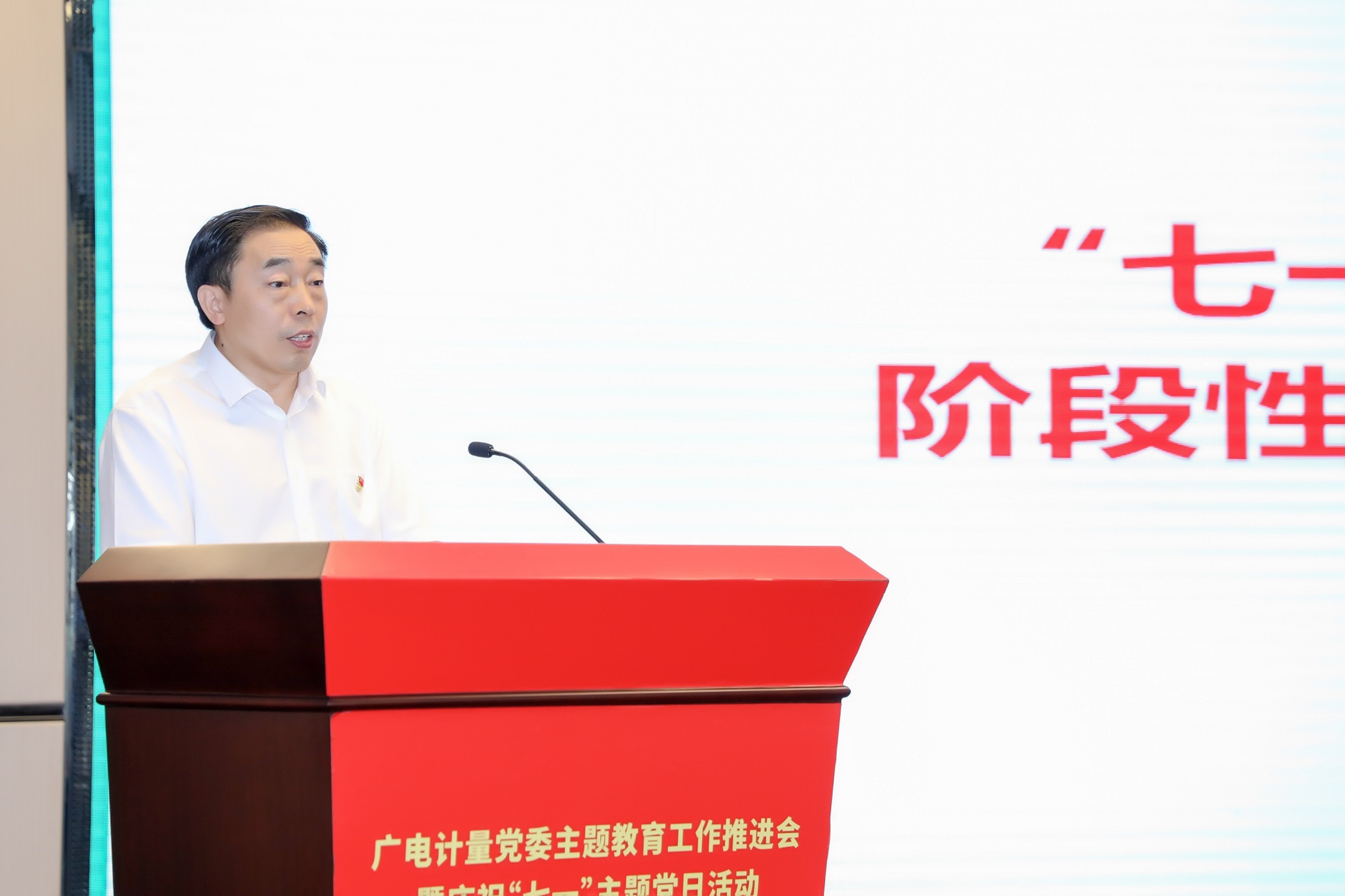 黃敦鵬作“七一”致辭暨主題教育階段性工作總結部署會講話。他指出,主題教育開展以來,廣電計量黨委緊扣上級黨委各項決策部署要求,精心籌劃部署,嚴密組織實施,深化理論學習,大興調查研究,抓實整改整治,推動高質量發展,始終把開展主題教育同落實推進中心工作緊密結合,總體呈現出了政治責任扛得穩、工作措施定得實、推動發展有實效的特點。